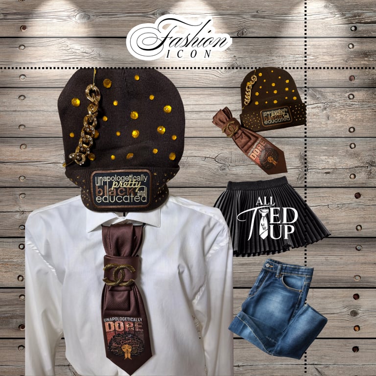 Michelle Wilson’s Beanie + Tie Couture Collection is a fearless fusion of cozy and couture — designed for women who turn sidewalks into runways. Each set is a bold expression of personality, blending high-fashion details like pearls, brooches, and embroidery with everyday comfort. Whether you're cheering from the stands or owning the room, these sets were made to be seen, remembered, and celebrated.